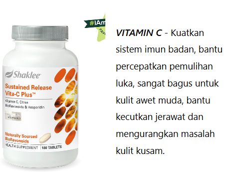 - Sustained Release Vitamin C – perlindungan imun semulajadi, kulit cerah berseri.